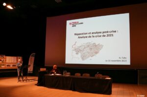 So when it comes to flood control, it is important to work together on all sides of the borders. At the initiative of the Contrat de Rivière Senne, Coordination Senne and Bekkensecretariaat Dijle-Zenne, over 100 professionals and policymakers from the Senne basin met in Tubize on 21 November to present and exchange the best practices and actions implemented over the past ten years to reduce the impact and risks of flooding.